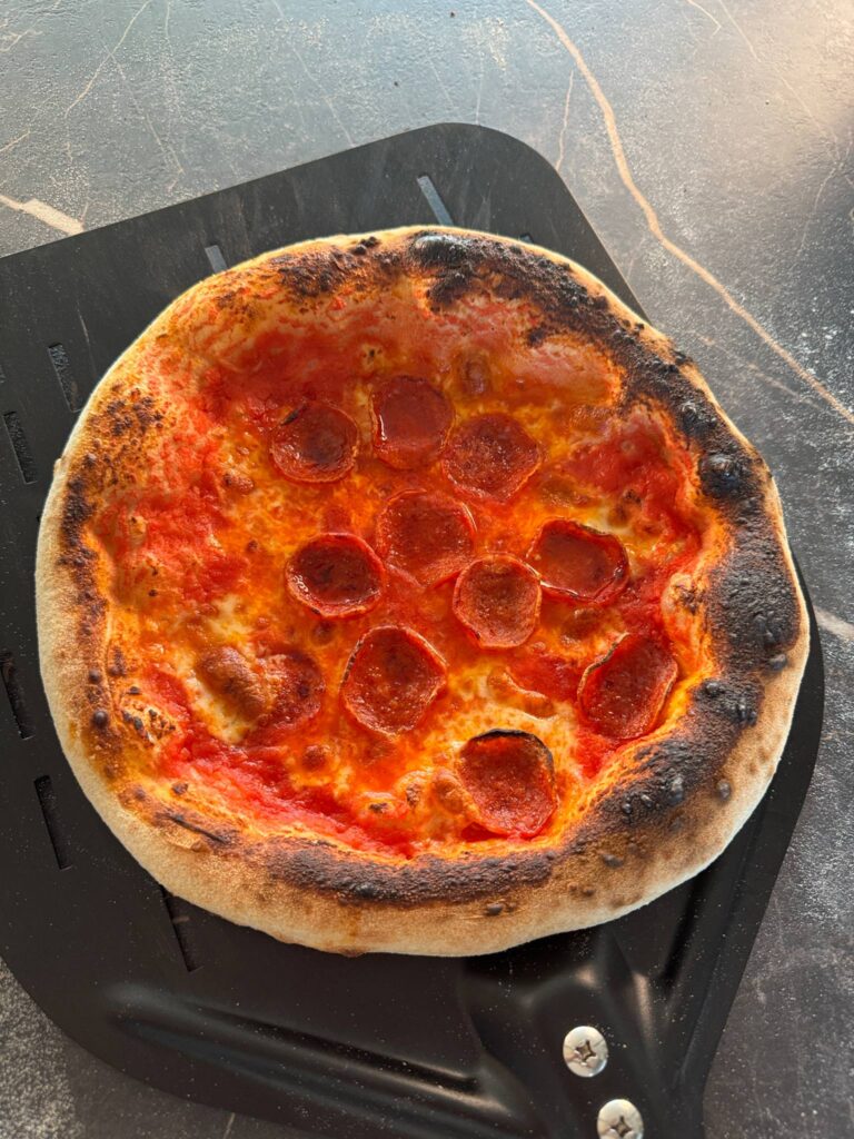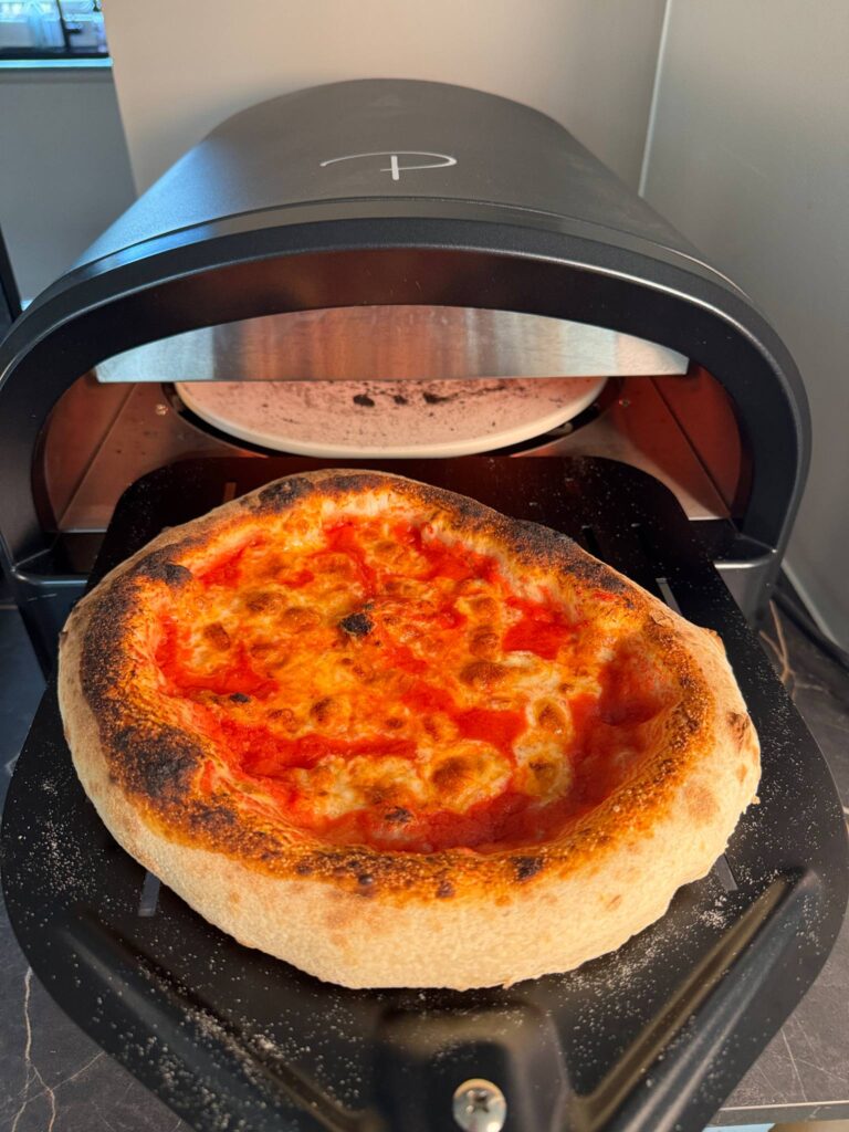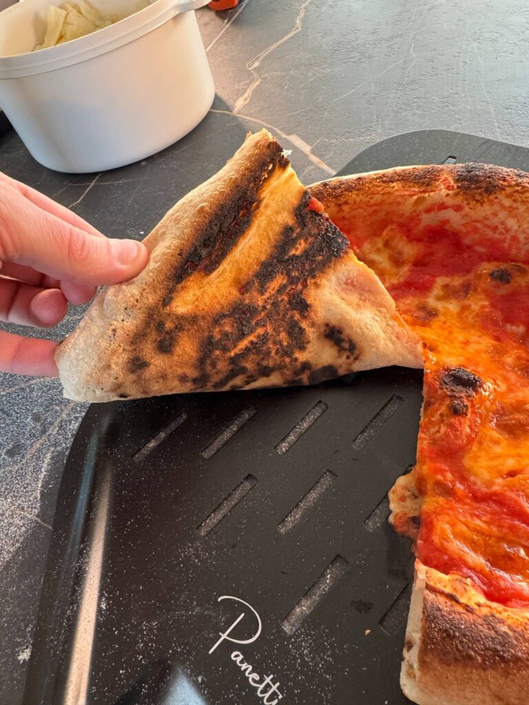 Vi testede ovnen med en klassisk 24-timers koldhævet dej med 65 % hydrering. Den nåede 400 °C på cirka 20 minutter, og her leverer den:
